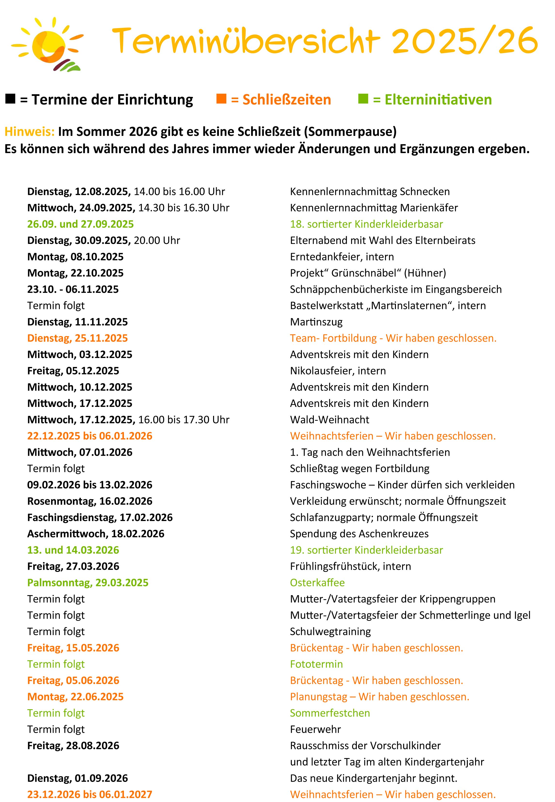 Bei vielen unserer Termine sind wir auf die Hilfe von Eltern und Elternbeirat angewiesen. Bei Festen muss z.B. der Auf- und Abbau vorgenommen oder diverse Dienste ausgeführt werden (Essensausgabe etc.). Hierzu finden Sie am schwarzen Brett im Kindergarten immer eine Liste zum jeweils nächsten Event, in die Sie sich eintragen können. Mit Ihrer Unterstützung tragen Sie dazu bei, dass unsere Feste und Events ein voller Erfolg werden und dafür möchten wir schon jetzt DANKE sagen!
